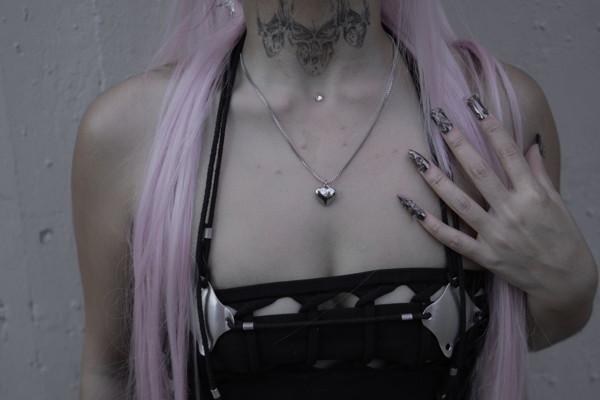 Sweet and soft, our Saccharine necklace is the quintessential dainty ornamental piece for your everyday style. Our double logo heart pendant sits at the center of the chest adding a natural, effortless, put together look. Stackable or simple, Saccharine is your go-to grab for day to day accessories.