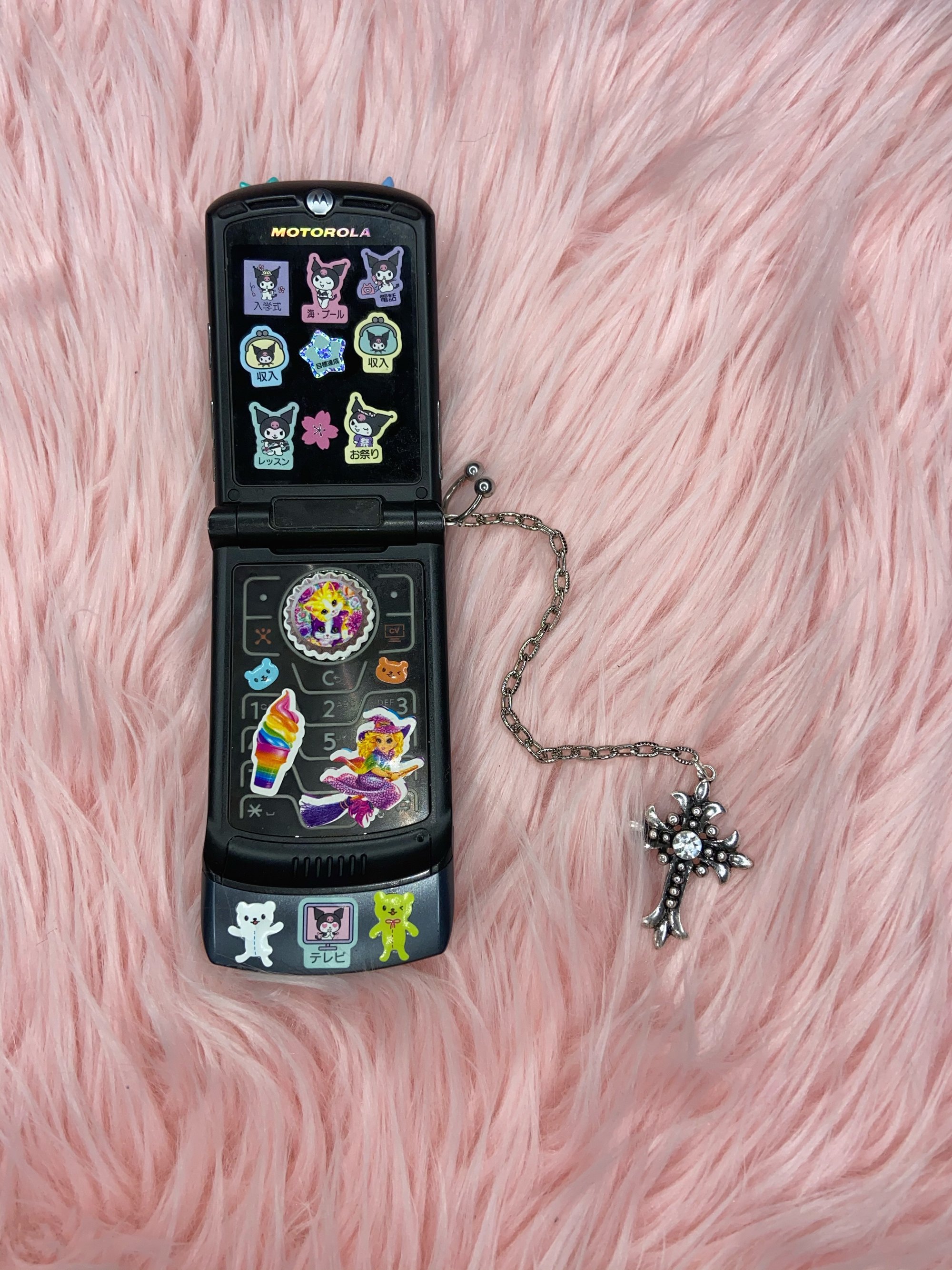 MINX is the staple piece for your looks and photoshoots! Delicately rhinestoned to shine your world. Minx comes with pill, chain, and cross detailing. She is one of a kind. The phone is inactive, but the art is immortal. Donβt repress yourself, express yourself. π