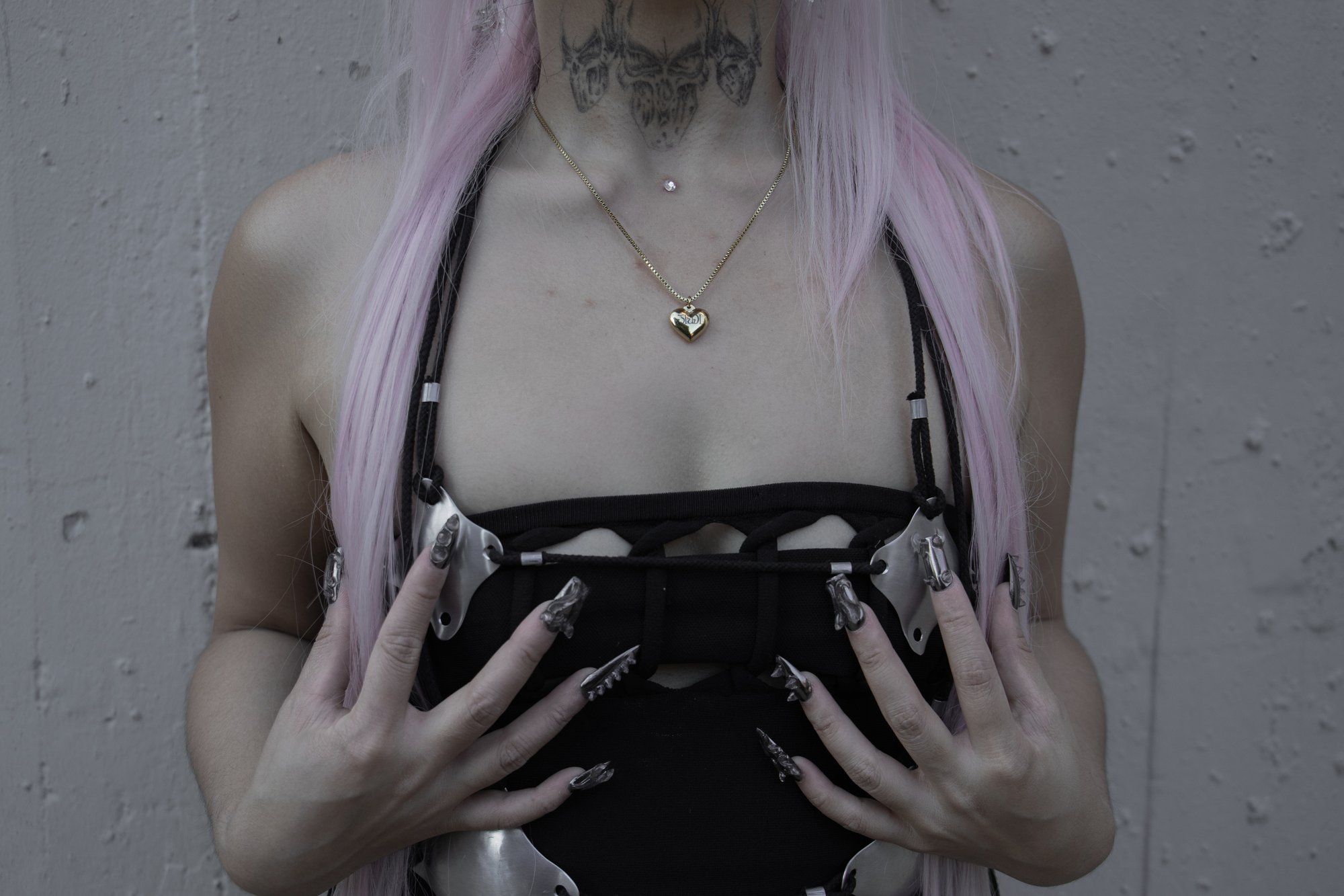 In the archives of JIUDI WORLD's history, in the year 4444, Sandy Taboo emerged as a legendary warrior and ruler, shaping JIUDI WORLD's destiny. Harnessing rare metals and liquid chrome from the planet’s core, Taboo forged powerful defense weapons and adornments unlike any seen before in these ancient times. These gleaming creations became the ultimate shield, made to protect the wearer with peace and resilience, their strength rooted in the planet’s own riches. An ancestral symbol of energetic innovation, an inertia that echoes through and reminds us to set our lives in motion. Sandy Taboo’s legacy in JIUDI endures, the name “Catharsis” marks their collaboration.